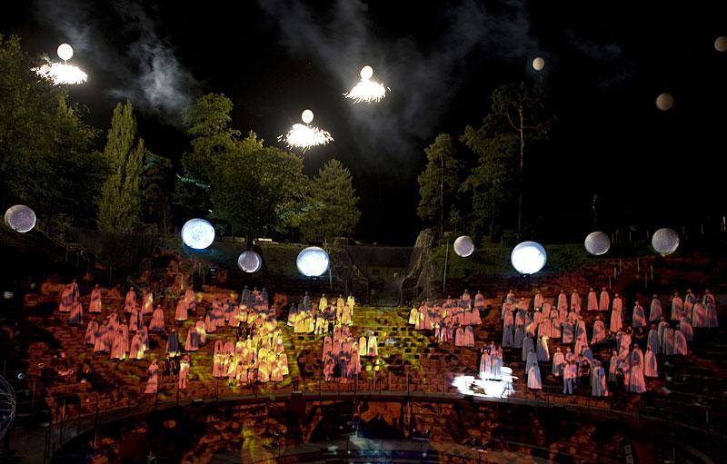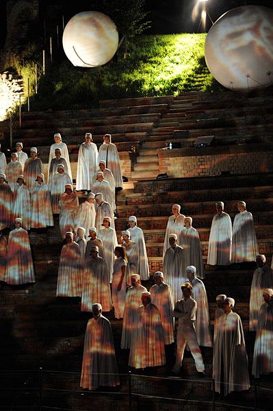 Mit den «Carmina Burana» wird das Theater Basel erstmals mit einer Freilichtaufführung im Römertheater in Augusta Raurica präsent sein. Ziel ist es, ein aussergewöhnliches Theatererlebnis zu schaffen, das sich an jedermann wendet. Daher werden bei der Umsetzung neben den Solisten des Theater Basel und der basel sinfonietta auch rund 200 Choristen aus Basel-Stadt und Basel-Land eingebunden sein. Es ist dies ein Theaterabend von Künstlern aus der Region für die Bevölkerung der Region.