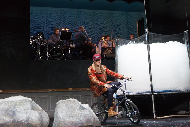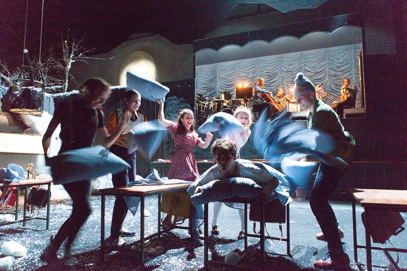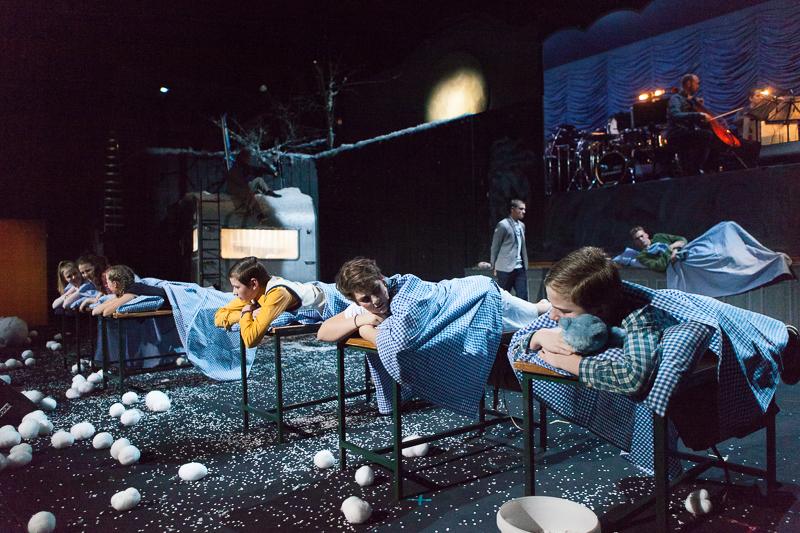 Die Regisseurin Daniela Kranz, die sich dem Basler Publikum letzte Spielzeit mit ihren Inszenierungen «Die Ereignisse» und «Kommissär Hunkeler» vorgestellt hat, bringt den Roman in einer gemischten Besetzung von Ensemblemitgliedern und Jugendlichen auf die Bühne. Speziell dafür schreibt der junge kalifornische Komponist Jherek Bischoff eine Bühnenmusik, die er selbst als «dynamisch und verspielt» beschreibt. Die Songs werden live gesungen und von einem Streichquartett und Perkussion begleitet.