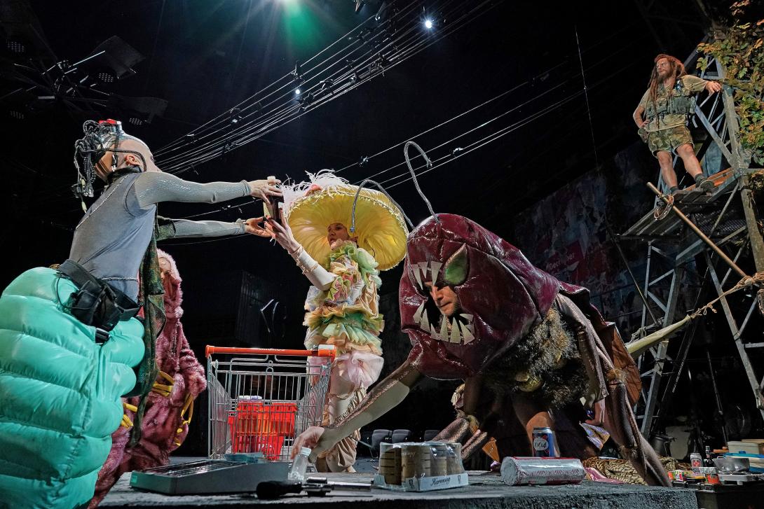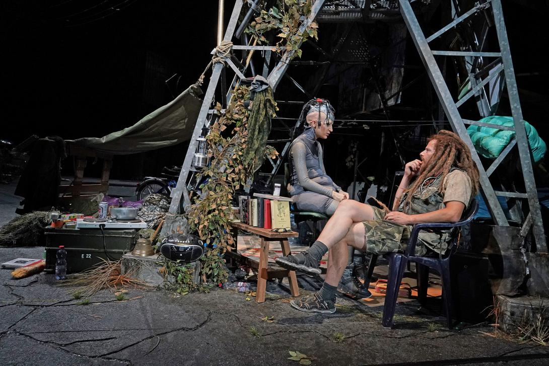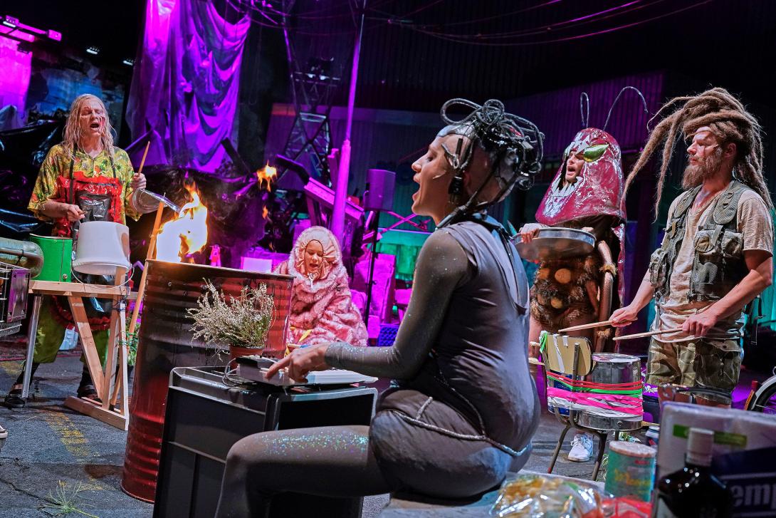 Kurz vor oder lange nach dem Untergang treffen sich Überlebende unserer Zivilisation im Theater Basel zu einem postapokalyptischen Symposium: ein humanistischer Prepper auf einem Solarmofa, eine Androidin mit einem Abschluss in Kulturanthropologie ein Zombie und diverse Exemplare nicht tot zu kriegender Gattungen – Bärtierchen, Pilz und Kakerlake. Sie beschliessen, sich nicht als (Fress-)Feinde anzusehen und einen Kodex: Es reicht nicht für immer, aber es reicht für alle.