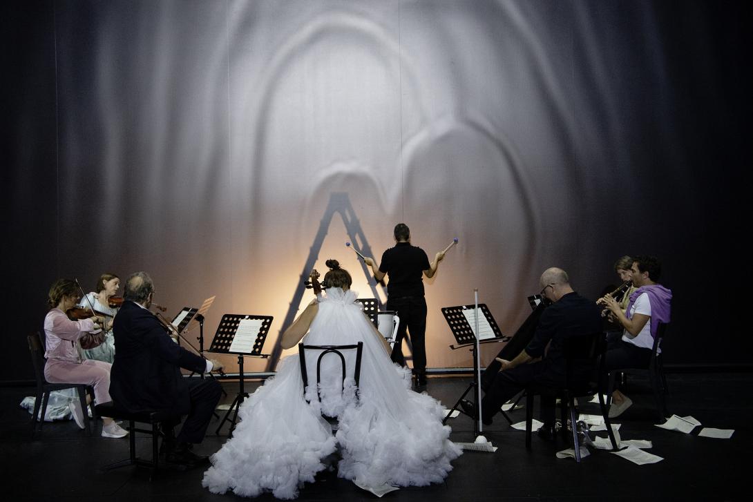 Bei diesem Musiktheaterabend spielt ein Orchester die Hauptrolle. Statt im Graben zu musizieren, stehen die Musiker*innen des Kammerorchester Basel auf der Bühne.