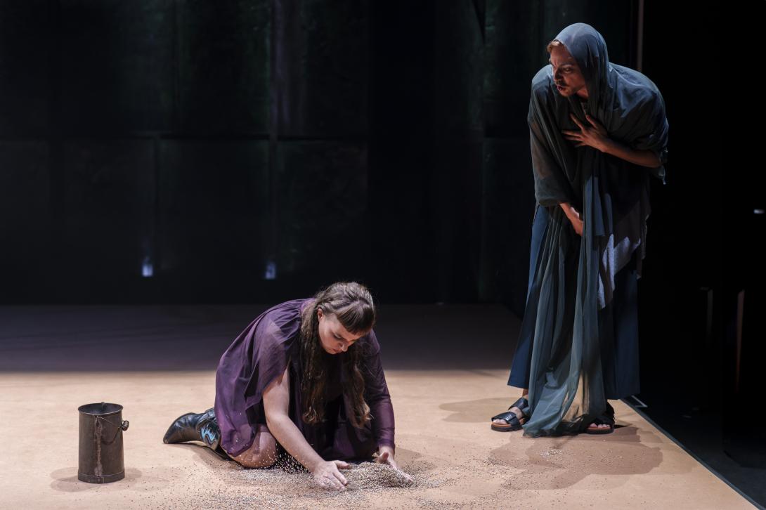 Vera Flück gibt Antigone, ihren Verlobten Haimon, einen Wächter und den Seher Teiresias. Sven Schelker spielt König Kreon und Antigones Schwester Ismene. Die beiden sind grandios. Inszeniert von Antú Romero Nunes, der zwischen Figuren auf der Bühne Spannungen, Beziehungen und Entwicklungen herbeizaubern kann, tragen sie den Abend. - Bajour